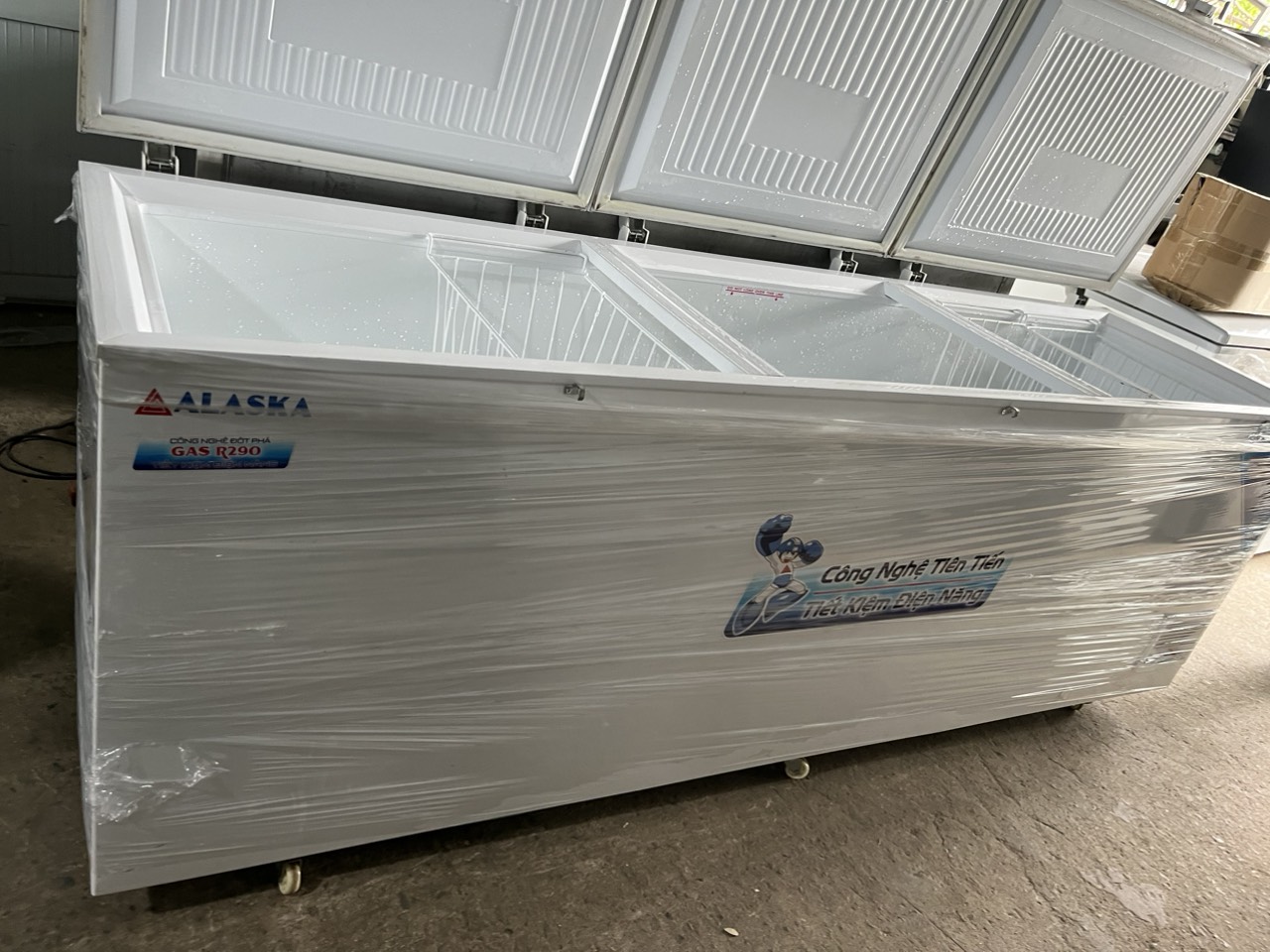 Tủ đông Alaska HB-1100C /1100L dàn đồng, 1 ngăn đông suốt, mới 90%, 3 cánh mở, ngăn rộng, mát lạnh nhanh, chạy êm. Lòng tủ thép sơn tĩnh điện