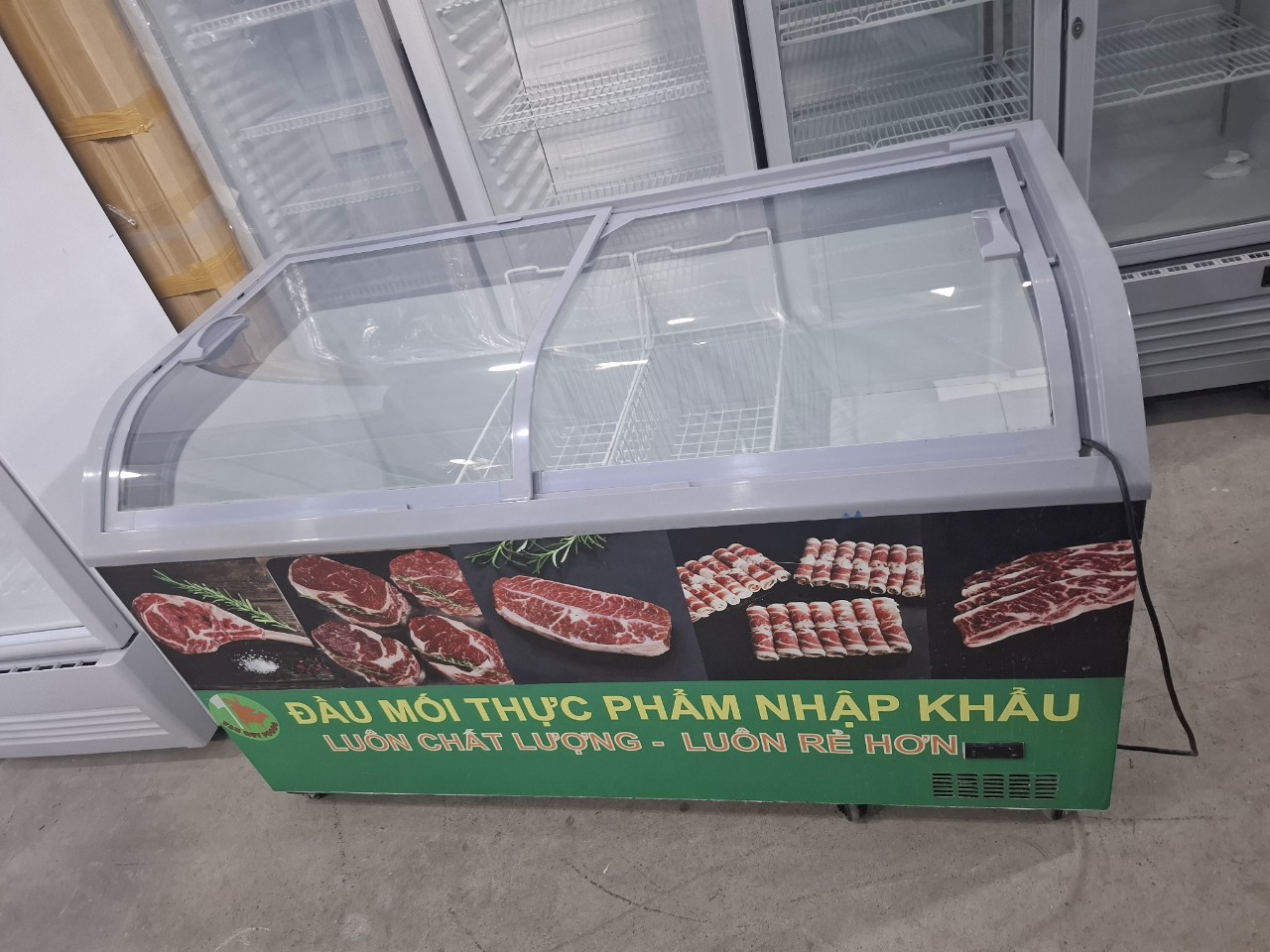 Tủ đông Alaska KC-395 mặt kính cong, mới 90%, 2 cánh lùa ngăn rộng, mát lạnh nhanh, chạy êm