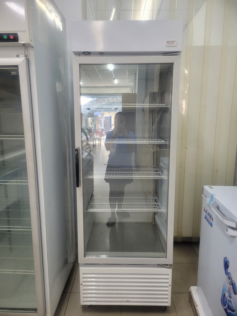 Tủ đông đứng Aqua fine 500L mới 88% mặt kính, chạy êm, mát đá nhanh, ngăn rộng, tiện dụng trưng bày.