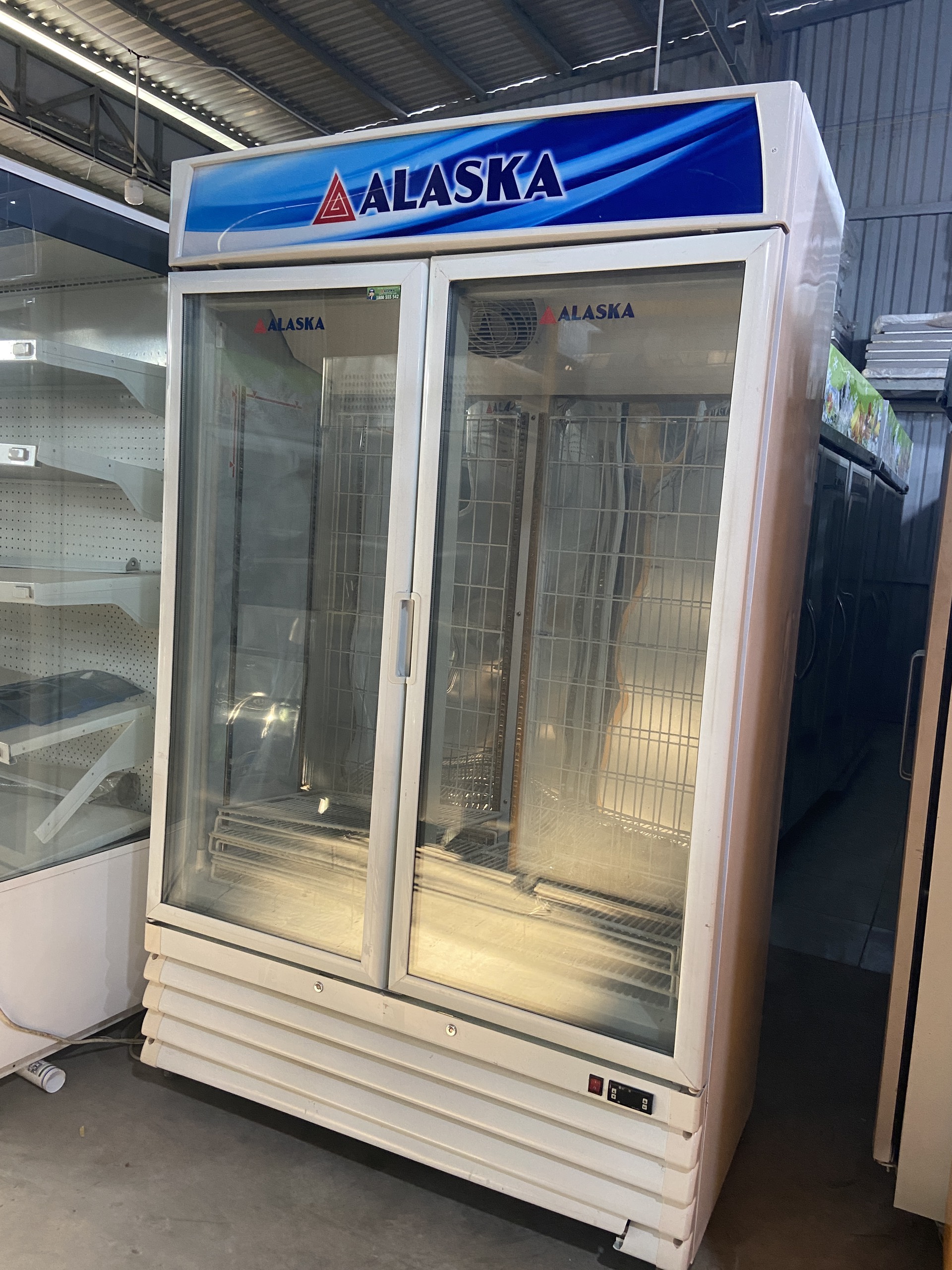 Tủ đông đứng Alaska 700l thiết kế ngăn rộng rãi, 2 cánh mở, đông sâu, khay vỉ đầy đủ, có đèn led sáng trưng bày đẹp. Phù hợp trưng bày hàng hóa cho hàng quán tạp hóa, hệ thống siêu thị.