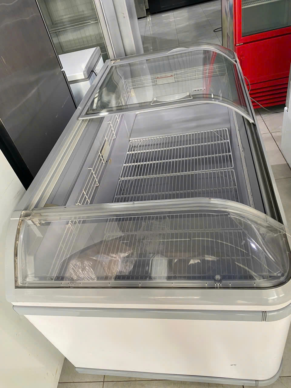 Tủ đông kính lùa Iraip dài 1,85m, mới 88%, tủ có chế độ tự xả tuyết, tiện dụng trưng bày thực phẩm.