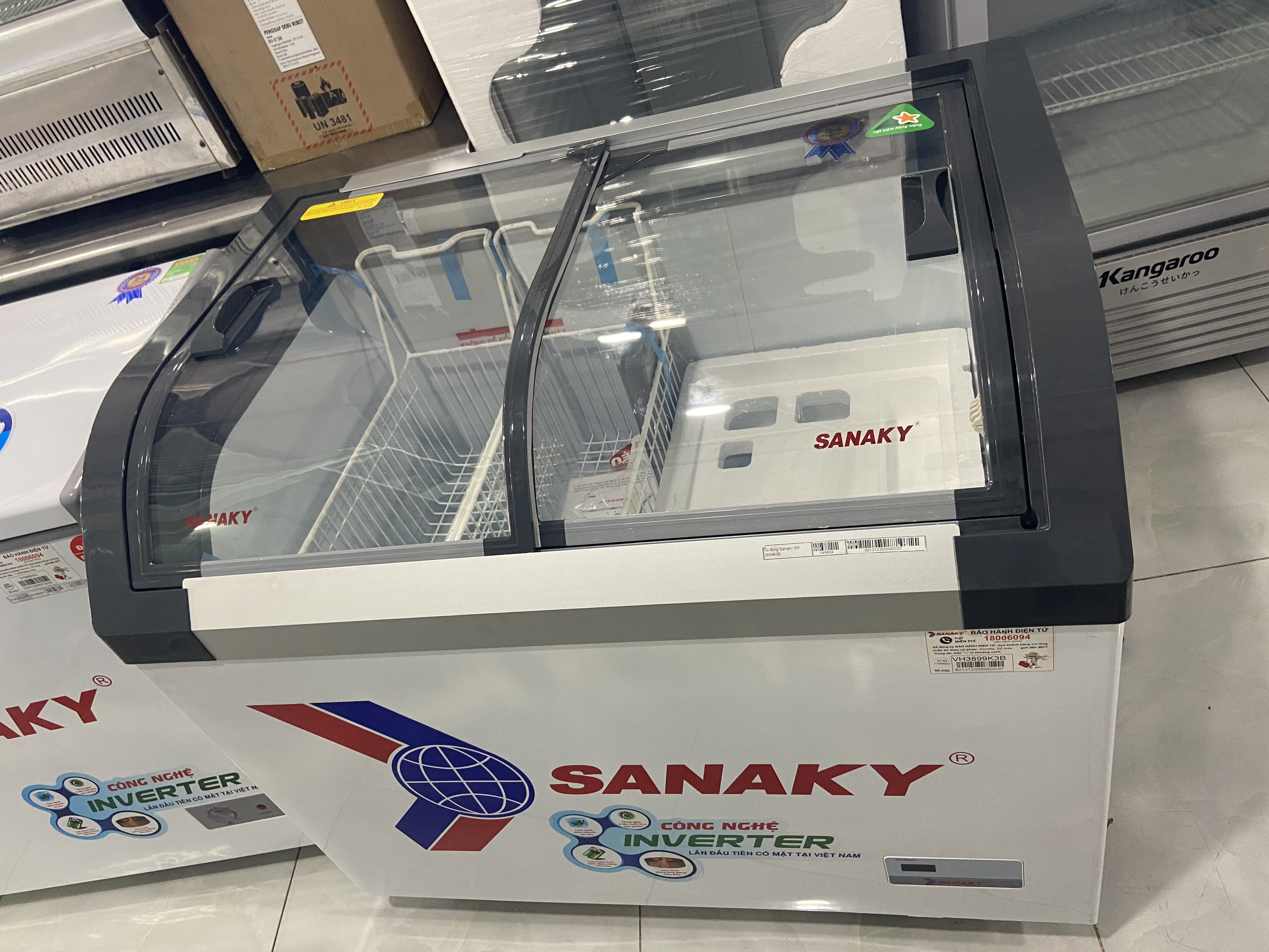 Tủ đông kính Sanaky Inverter 280 lít VH-3899K3B, mới 100%, nguyên zin toàn bộ, hàng trưng bày chưa sử dụng.