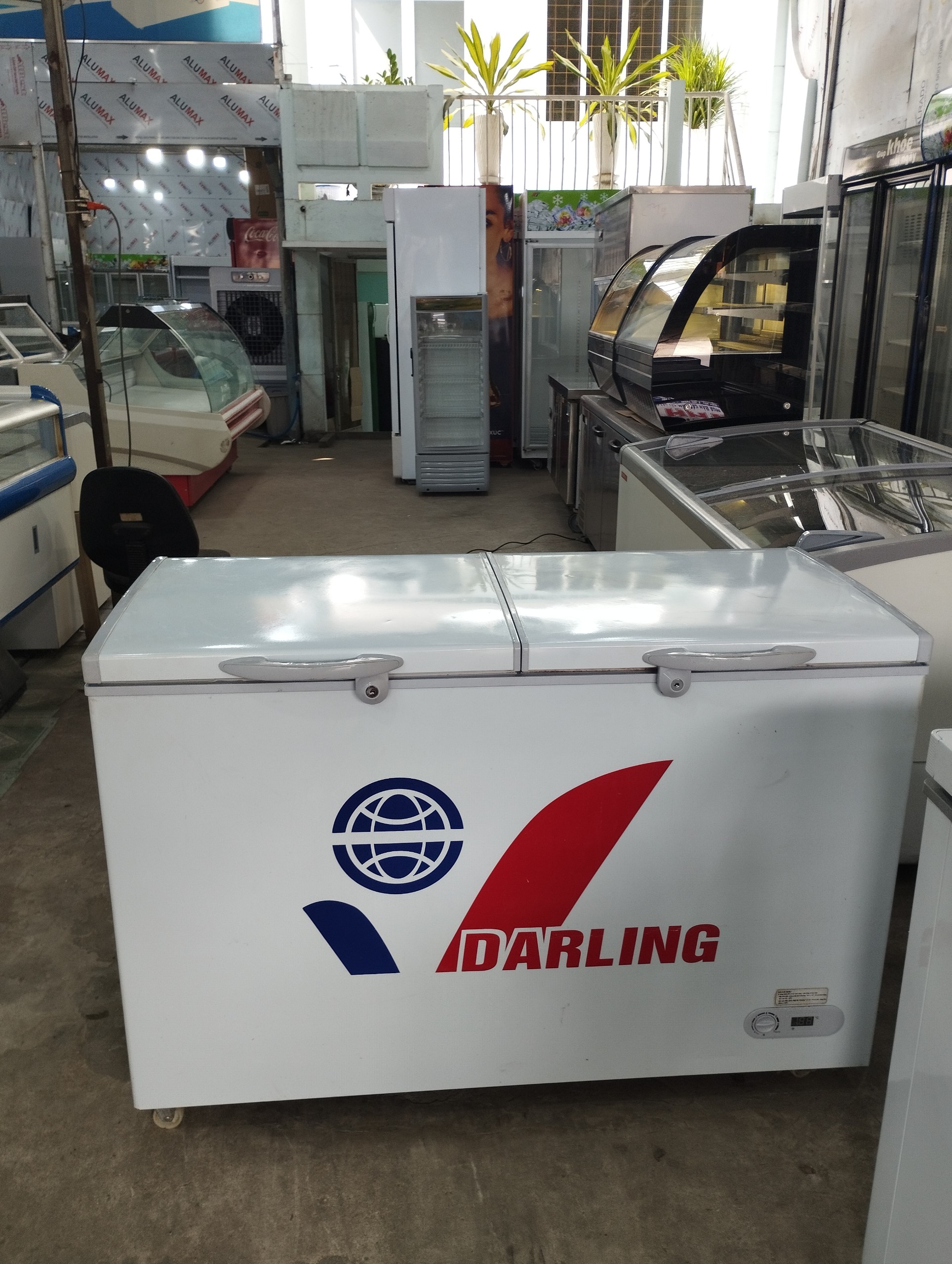 Tủ đông- mát cũ Darling 370 lít, mới 88%, 2 nắp đậy, dàn lạnh đồng ngăn đông xuốt, tiện dụng, mát đá nhanh, chạy êm, tiện dụng để đồ,
