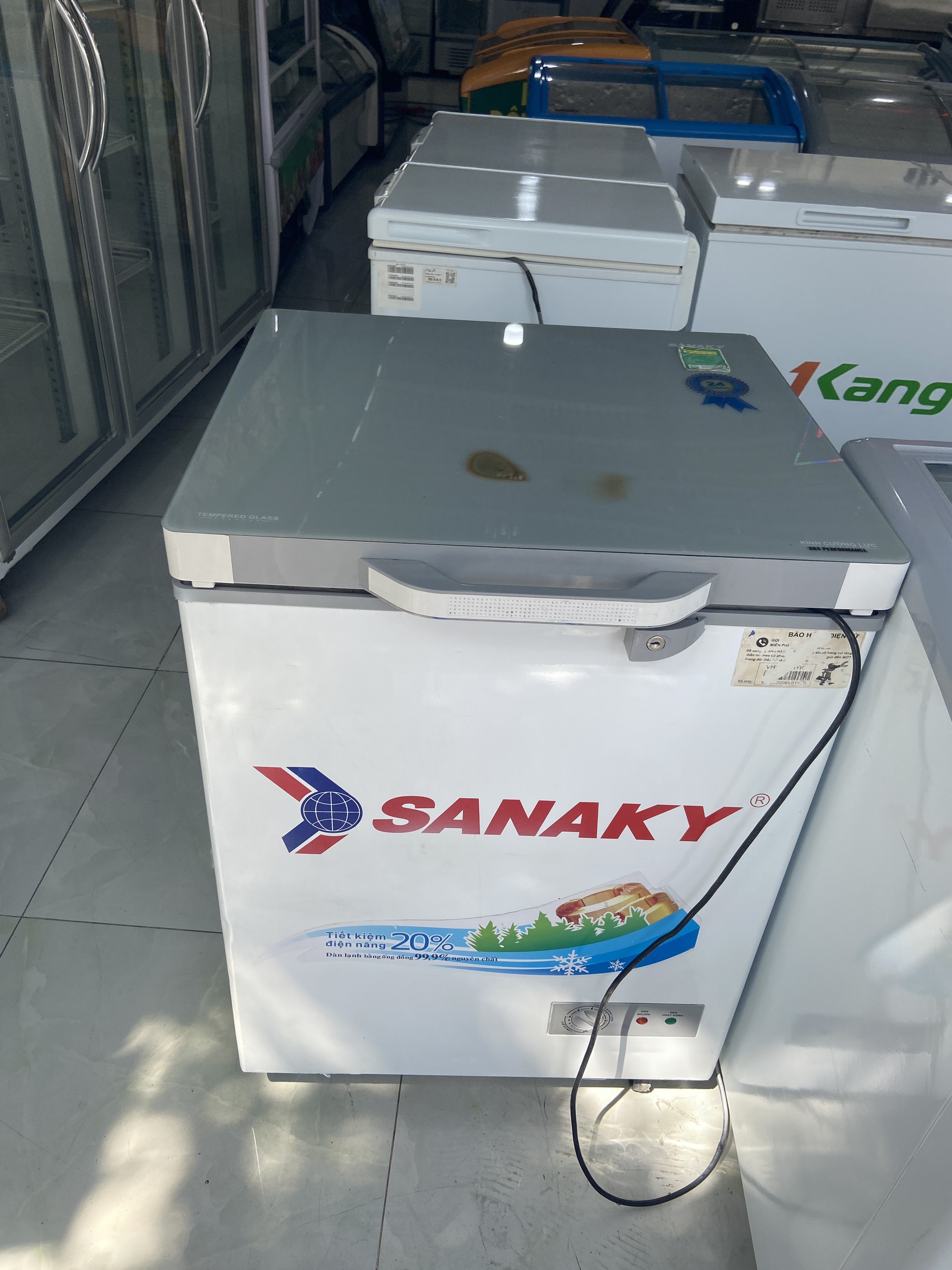 Tủ đông Sanaky 100 lít, mới 88%, mát đá nhanh, dàn đồng, tk điện năng, mặt kính chịu lực.