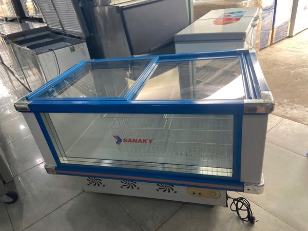 Tủ mát Sanaky nằm 280 lít, mới 88%, 2 cánh kính lùa, mặt trước có kính , tiện dụng trưng bày thực phẩm bán