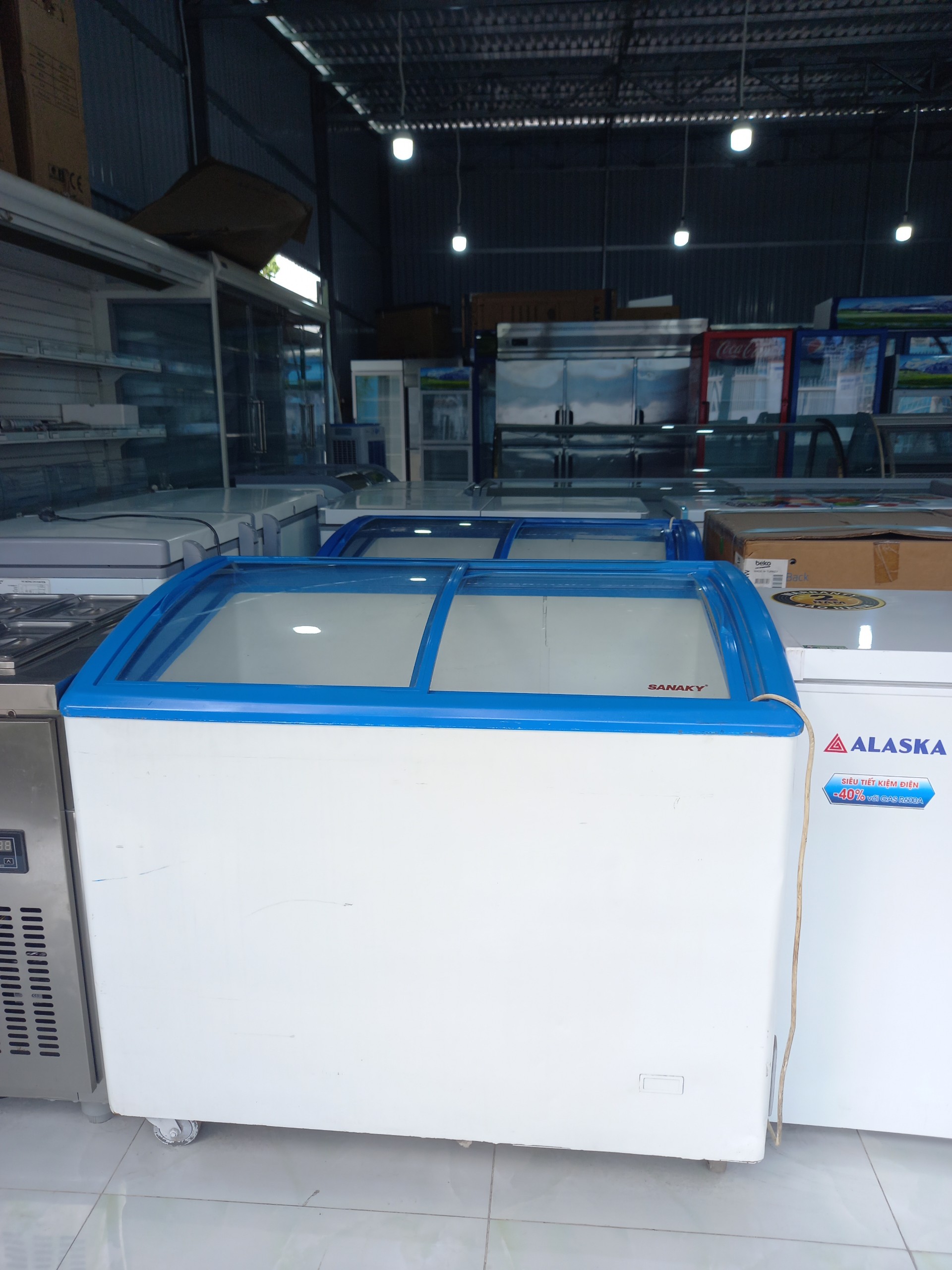 Tủ đông Sanaky 300L kính lùa, làm lạnh tốt, chạy êm, ngăn rộng tiện dụng