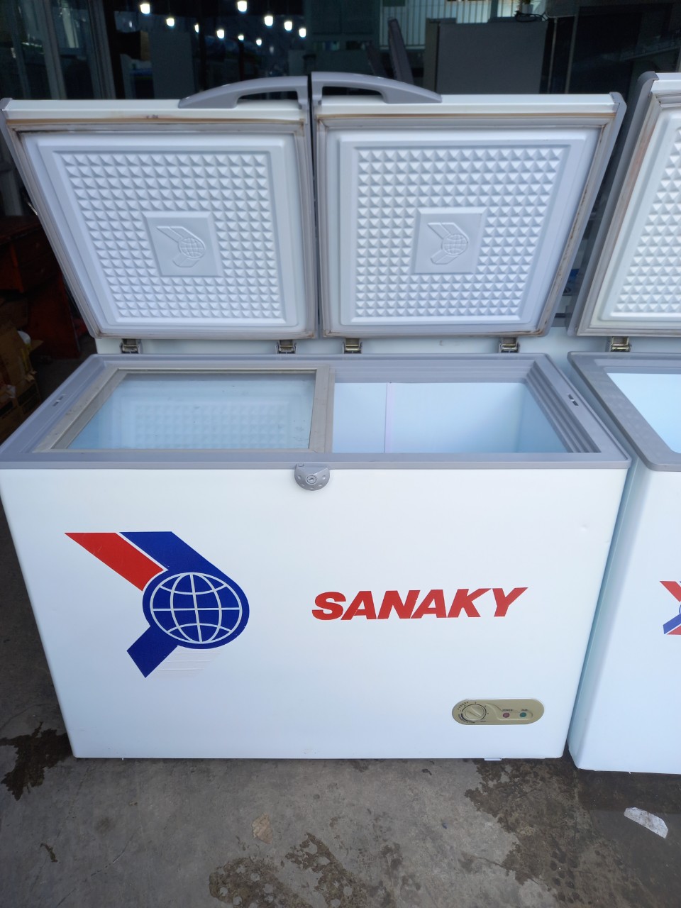 Tủ đông Sanaky 280 lít, mới 87%, 2 nắp đậy, ngăn đông xuốt, tiện dụng, mát đá nhanh, chạy êm, tiện dụng để đồ, dàn lạnh đồng