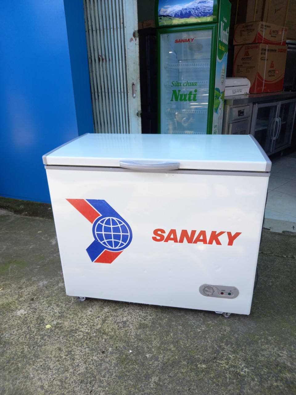 Tủ đông Sanaky 300L mới 88% làm lạnh tốt, chạy êm, 1 nắp gập tiện dụng
