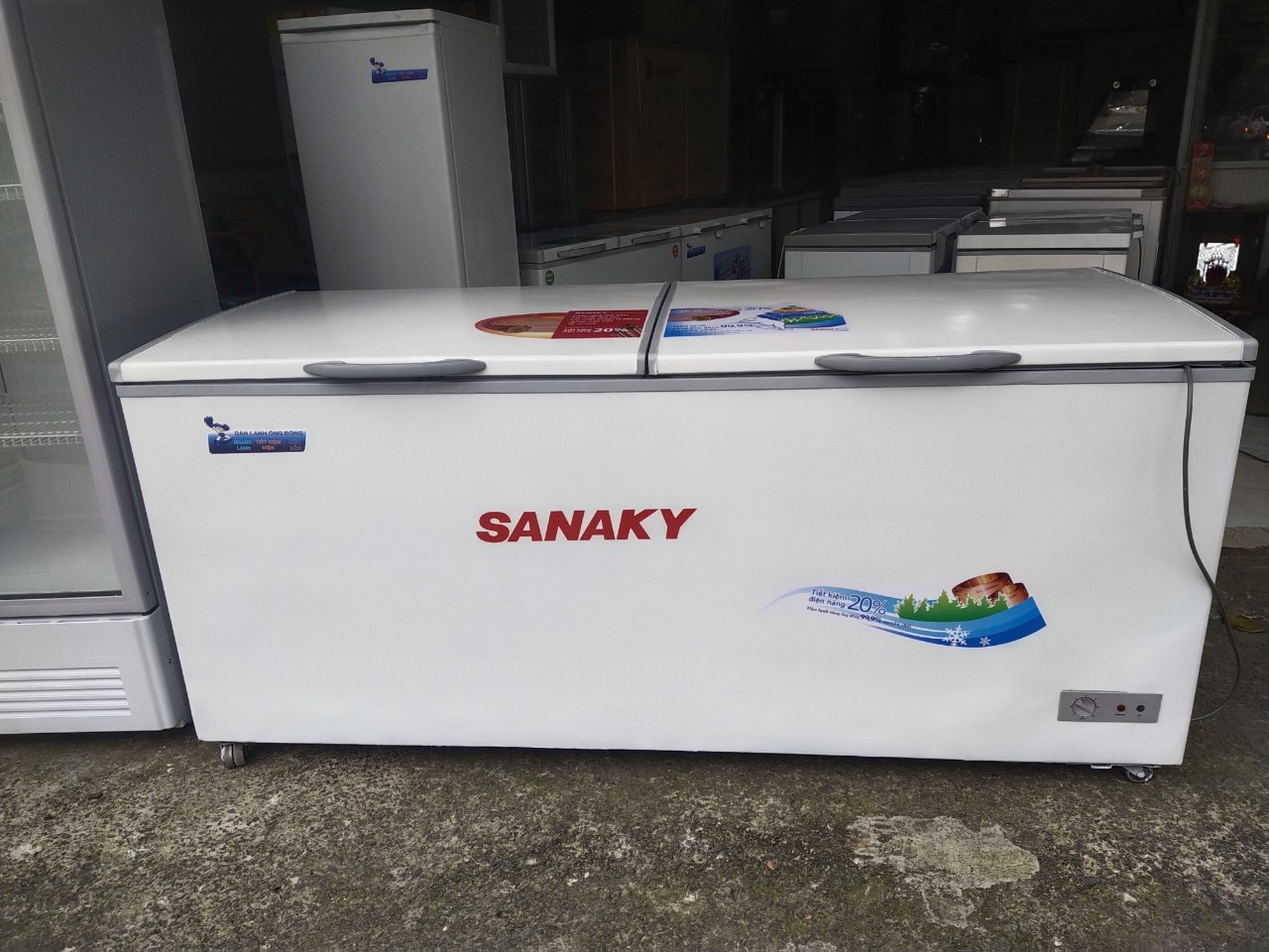 Tủ đông Sanaky 860L mới 88% làm lạnh tốt, côi láng, ồng đồng, ngăn rộng tiện dụng cất trữ hàng hóa, thực phẩm